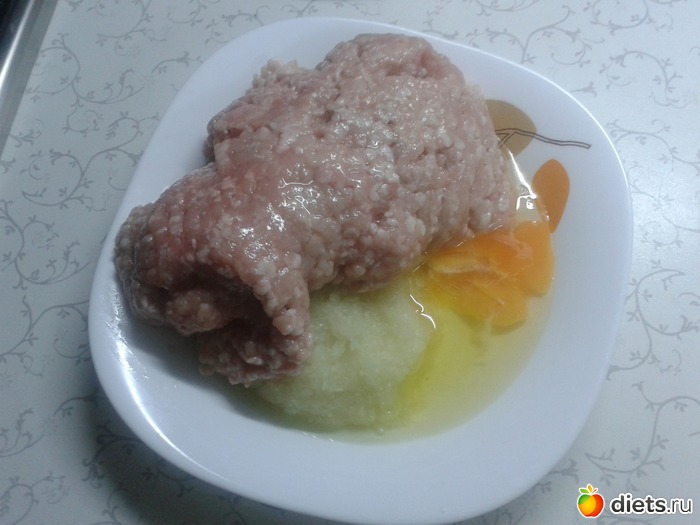 Все ингредиенты: фарш, лук, яйцо, соль и перец перемешиваем,