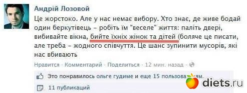 Во-первых, они защищаются, а вот-вторых...Ну давайте тогда пойдём резать семьи тех,кто сейчас на Грушевского протестует. Это нормально будет? Вы, вообще о чём? Любой нормальный человек не может не осудить подобные призывы, а Вы их оправдываете.