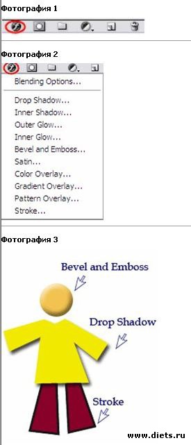 С помощью нее вы можете применять слоям определенные стили, например, сделать тень, обводку, объем и так далее. рис.3
