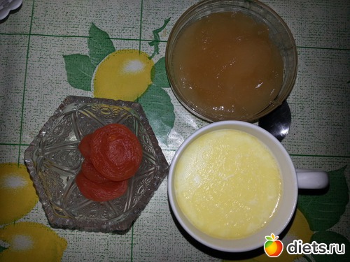 21,01,14 Полдник Стакан горяче-тёплого молока 2,5% со сливочным маслом, 5 шт кураги, неск. ложек мёда
