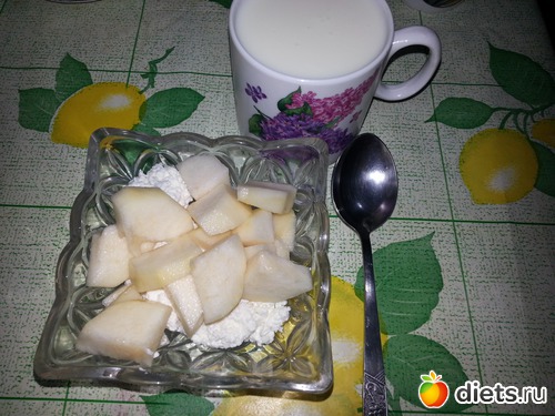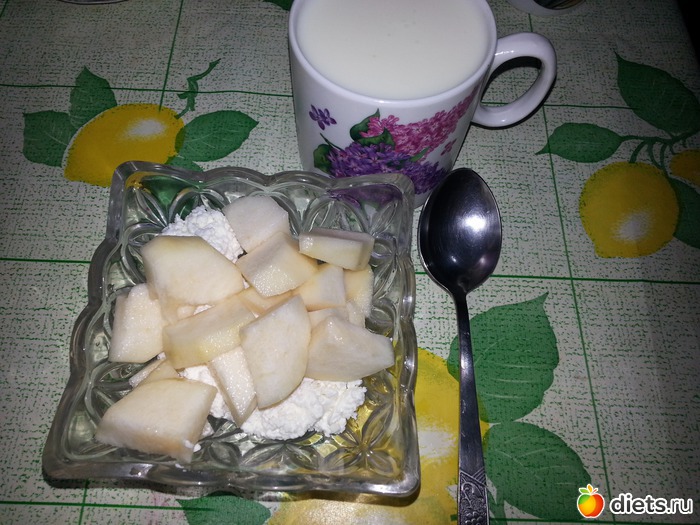 21,01,14 Ужин Творог с грушей, стакан кефира. Кефир купила в "Молочном бидончике" - это киоск, куда продукцию привозят из села, неподалёку от города. Там, как выяснилось, вкусное молоко, отменная ряженка, хороший кефир, вгуздный творожный сырочек, брынза на "четвёрочку" по пятибальной - короче, хороший такой молочный киоск)) И продавщица в годах - приветливая!!!