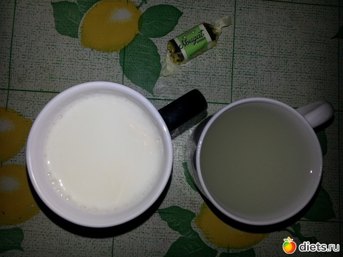 Перекус стакан с Тайлол-хотом, стакан молока 2,5%, конфета Нуга