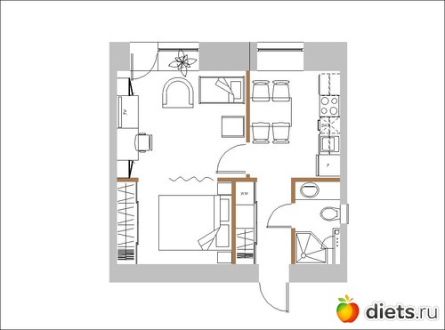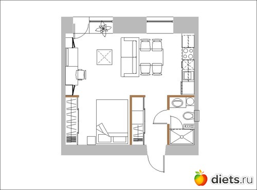 Только сомнения: часто входная дверь в однушках с другой стороны прихожей, тогда проект отпадает.