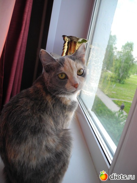 Красивая котейка, в пастельных тонах. Обычно черно-рыже белые, а тут дымчатый с абрикосовым.
