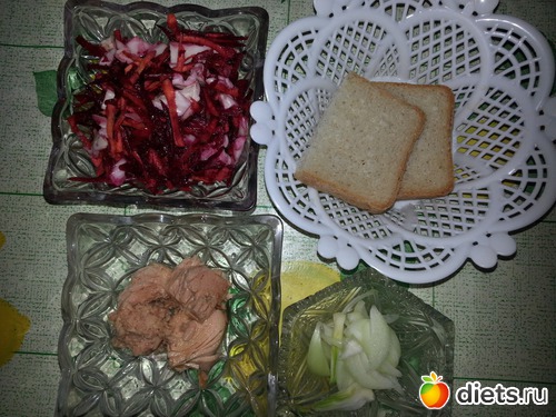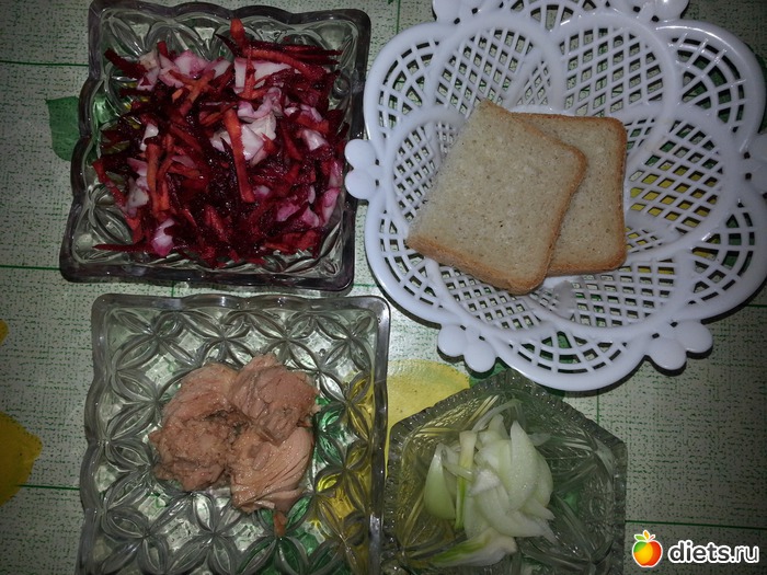 22,01,14 Обед Полконсервы тунца, 2 куска белого хлеба, сырой лук, салат Щётка