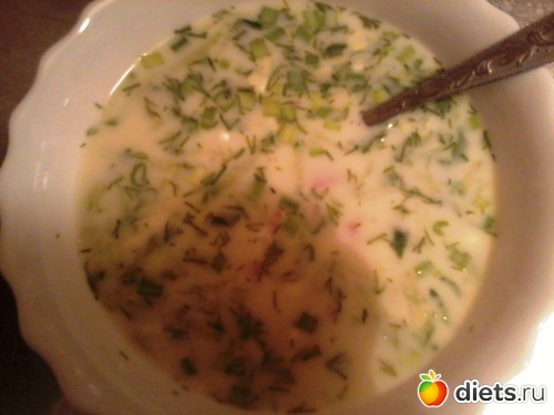Так как у меня ЧБ то окрошка но 1% кефире "Вкуснотеево" + зелень (лук, укроп) + курогрудь отварная + яичко вареное + соль перец по вкусу.