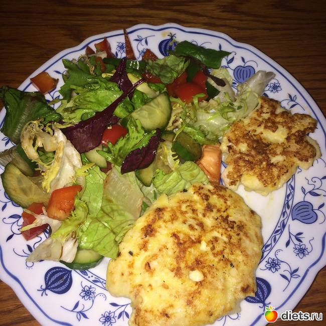 порезать квадратиками 0,5х0,5 добавить 1 ст ложку кукурузного крахмала, 1 ст л. Творога 0%,1 яйцо( у меня остались 2 желтка я их использовала) молочка 0,5% приблизительно 2 ст ложки, соль, перец. Все перемешала и дала постоять 15-20 минут. Далее ложкой кладем на горячую сковороду. Жарила без масла. Очень сочные!!!