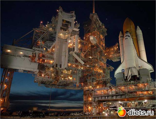 По бокам космического корабля "Кеннеди" размещаются два бака по 5 футов шириной..