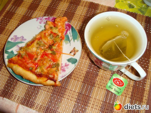Прихожу домой, здесь дети принесли от бабушки пиццу. Ну и как тут стройнеть? На перекус "пришлось" попробовать с чашкой зелёного чая.