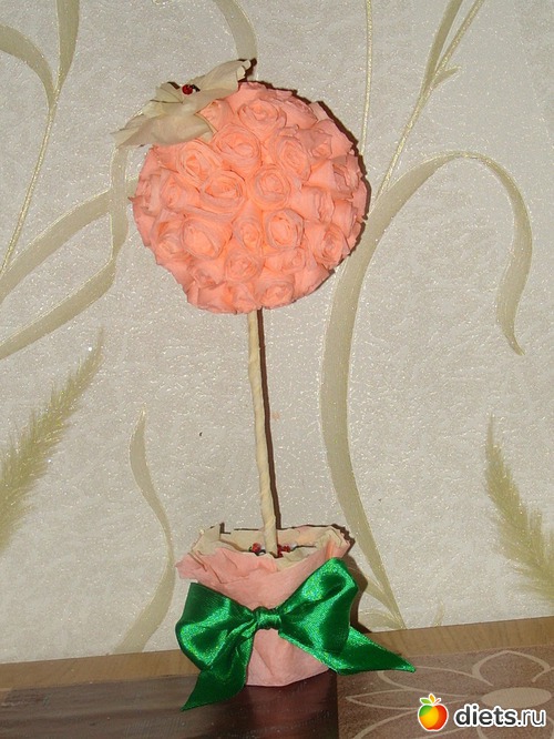 А работа эта в садике долго простоит и будет глаз радовать, мы вот елку в прошлом году из перьев сделали, в этом году перед праздниками все прошлогодние поделки выставили на шкафчики деток, заходишь в сад а там елочки глаз радуют.Так что ваша работа еще долго будет поднимать настроение