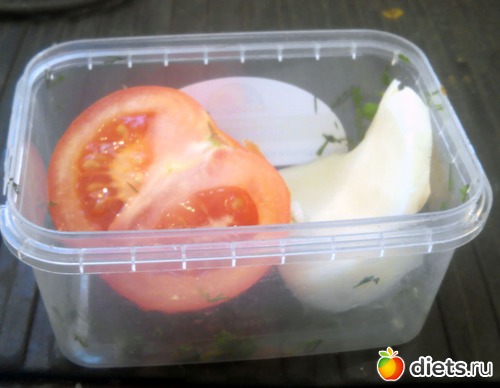Вторая половинка помидора и немного сыра.