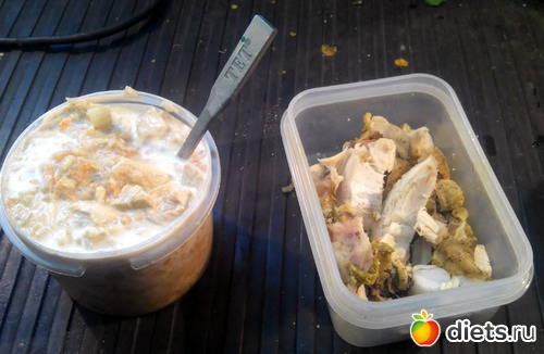 Полдник тоже повторяет вчерашний. Разве что чуть больше курицы.