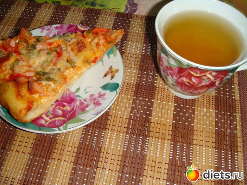 На перекус опять согрешила, съела кусок пиццы с чашкой зеленого чая ( не всю пиццу вчера мои съели, мне оставили.добрые...)))))