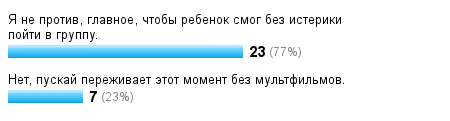 Мамочки, очень хотелось бы узнать: как бы Вы отнеслись к предложению воспитателя, чтобы пока все детишки (до 8:10) собираются в группу, там шел мультик (коротенький, например Маша и Медведь). Группа открывается новая, ясельная, детишки на адаптации - очень тяжело пережить момент отрывание от мамы. Вот есть вариант с мультиком. О том, что надо детей увлекать речь не идет - 10 впервые оторванных от мамы детей даже 2 воспитателям одновременно не утешить.