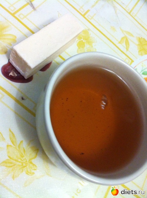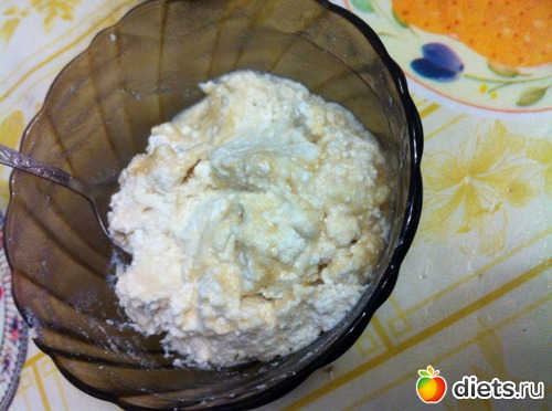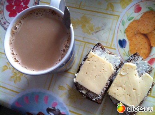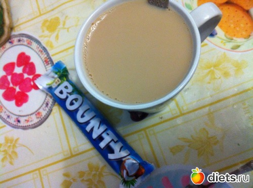 Совсем немножко творога + пол маленькой баночки агуши + кофе с молоком без сахара(всегда пью чай и кофе без сахара!) + БАУНТИ