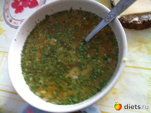 Бульон с яйцом и зеленью + 2 кусочка бородинского+ сыр с маслом + кофе с молоком