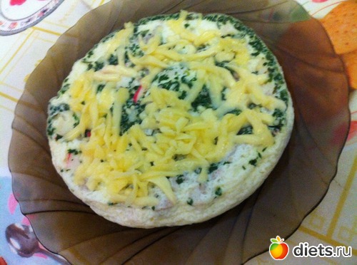 Омлет с крабовыми палочками+ сыр и немного фарша ( сделала без фарша, поставила в пароварку и тут прибегает мама и говорит:Вер, от беляшей осталось пол ложки фарша, ну не выбрасывать же положи в омлет, ну я не сдержалась