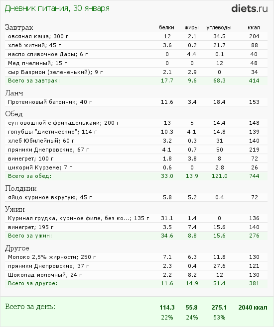 Калорийность продуктов