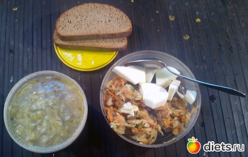 Чечевичная похлебка (наконец-то она закончилась!), еще салат, сыр и два кусочка хлеба.