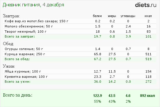 В рационе еще отруби овсяные не забываем и 1,5-2 литра воды)