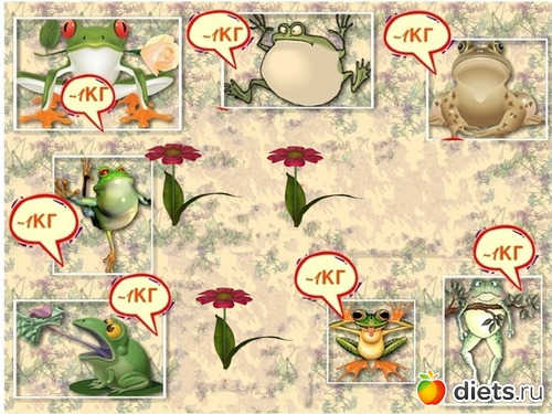 .. В моих рисунках между 100 и 90 десять килограммов и десять толстых жаб. С каждым потерянным килограммом я стираю с картинки одну жабу.
