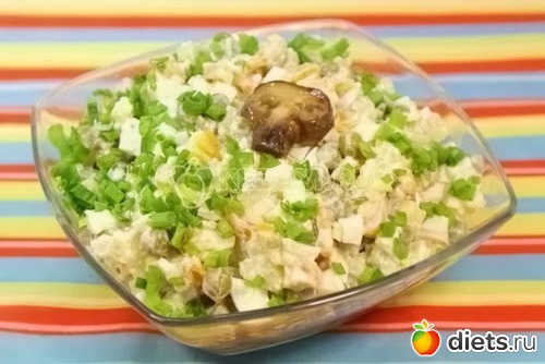 прямо оливье с шампиньонами..вкусненько