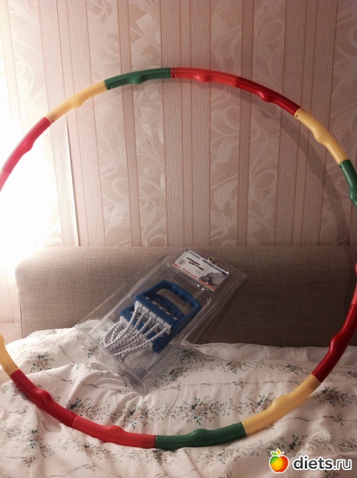 А еще купили маленькие элементы домашнего спорта: мне - обруч, милому - эспандер))