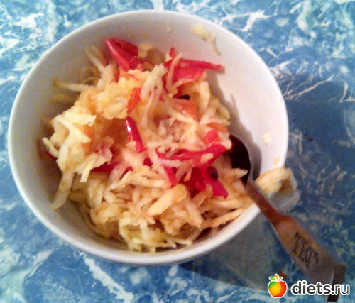 Сначала натер и съел яблоко.
