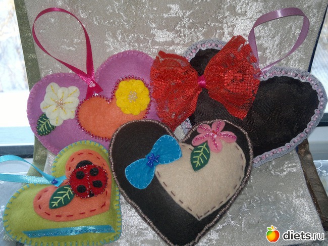 На день Св. Валентина (ближайший) сделала вот такие Валентинки, яркие, мягкие, излучающие позитив и тепло.