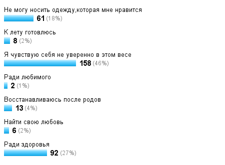 Девочки, я вот люблю себя такой какая есть, единственный дискомфорт-это летом тяжело выбрать одежду, чтоб и легко было и жир скрывала))))))Но мой муж желает видеть меня только стройной! Мы уже шестой год вместе, но он не может смирится, что я полнушка)))Да я много раз худела, но всегда набирала... Я чувствую себя веселее, когда я могу питатся чем хочу, а не сидеть на этих бесконечных диетах... Сейчас дошло до того, что он вообще не обращает на меня внимания, ждет пока похудею, после родов +10лишних кг! У меня пятый день срыва ем много, итог+1,5кг... Последнее время я точно могу сказать, что получаю удовольствие только от еды...это какой то замкнутый круг... Нет настроя худеть, от мужа не какой поддержки...7кг сбросила-все заметили, он ни чего не замечает-дальше худей, когда будешь опять 72, как до родов весить, тогда замечу! Печально как то это все... Еще и КД на подходе, настроение совсем ужасное... Завтра попробую разгруз, потом опять на ПП+спорт...хотя не какого желания! Поддержите, как можите пожалуйсто)))))))