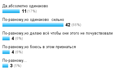 А Вы можете твёрдо сказать, что любите своих детей одинаково сильно? А если всё-таки закрадывается хоть малейшее сомнение, что нет, то каковы причины?