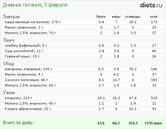 но сюда еще войдут 2 приема пищи: