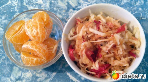 Придя домой, я, в первую очередь, натер яблоко и почистил пару мандаринок.