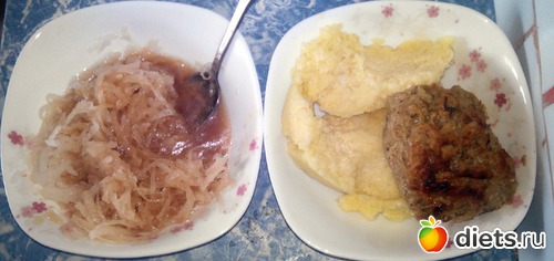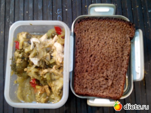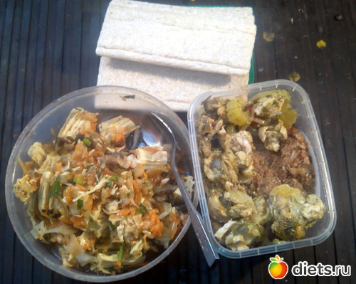 Смесь из всего и вся. Капустная котлета и немного грудки, которую я вчера делал. И хлебцы...