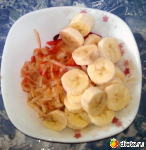 Тертое яблоко и нарезанный банан.