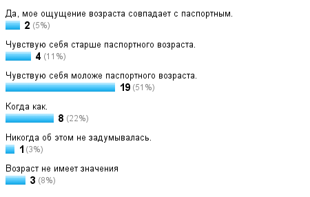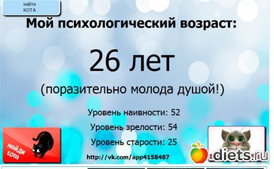Я выбила возраст 32 года - написано, что поразительно молода душой, да я всю жизнь такая, а они удивляются:-)))