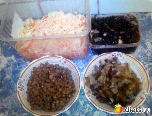 Квашенная капуста, соленые огурцы... и морская капуста и чечевица.