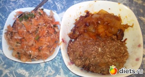 Капустный салат, капустная же котлета и остатки "поджарки по-сибирски".