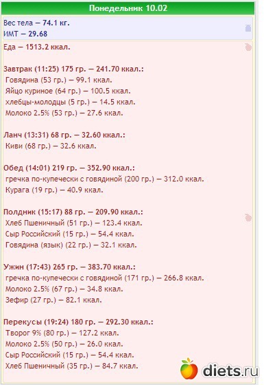 на одном похудательном сайте я расчитала суточные нормы ккал, БЖУ, там же заполняла сегодня дневник питания.