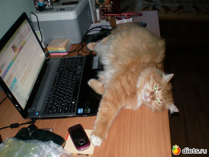 А эти три прямо свеженькие, только что сняла! Его излюбленное место - у меня на левой руке, когда я сижу перед компом! (Заметили какая страничка открыта на мониторе?