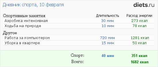 Это питание)Планирую сделать плоский живот с Джилл сегодня, 1 уровень. Обратила внимание, что не только я сама одеревенела от силовых, пресс тоже расслабился. Потом может буду чередовать с чем-нить)Сегодня первый день на работе. Нормик, не нервничала, на сладкое не тянет. Болит низ живота, тянет до ужаса, КД, так ещё весь день на попе... Хожу-терпимо, боль проходит, а сижу-и начинается. Нужно сегодня прогуляться до дома))) И попрыгать с Джилл))До 11 имею право, пусть соседка снизу не возникает)) Н уесли что-ремонт делаю
