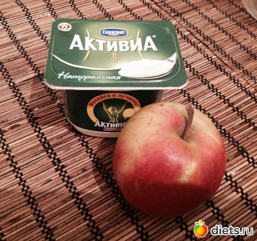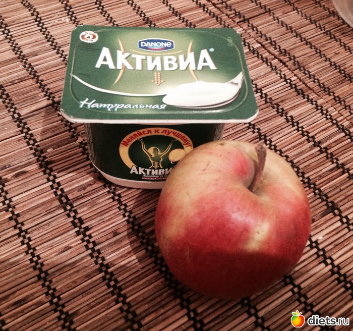 В 11.00 всегдаший перекус обозначился Активией (без добавок) и небольшим яблоком