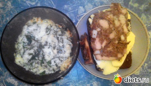 Яично-творожная запеканка. И хлеб со сливочным маслом и мясная запеканка.