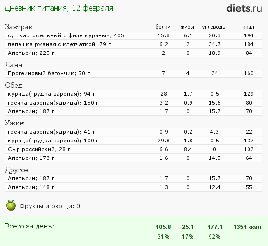 Всем привет) Вот такое сегодня питание: