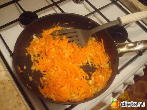 2. пассеруем морковь и лук на маленьком кол-ве масла и водички