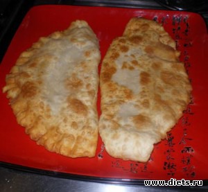 Чебуреки жарим на постном масле с обеих сторон, не накрывая крышкой, до румяного цвета – минуты 3 с каждой строны.