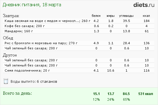 Отчет за 18.03 Вот рацион за день вчерашний: