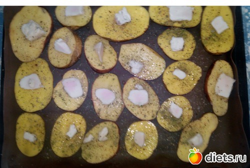 Кстати сало на картошке можно заменить сливочным маслом, смазать а посыпать сверху вегетой.