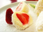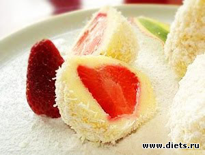 Свежую клубнику вымойте и обсушите, с замороженной слейте воду. Для приготовления клецек в миске смешайте творог, муку, сахар, яйцо. Добавьте сливочное масло и снова перемешайте. Из полученной массы влажными руками приготовьте клецки, вложив в серединку клубнику. Тщательно слепите и сварите клецки ( предварительно обваляв в панировочных сухарях). Когда клецки всплывут, выньте их шумовкой, дайте стечь воде, обваляйте клецки в кокосовой стружке, орехах.