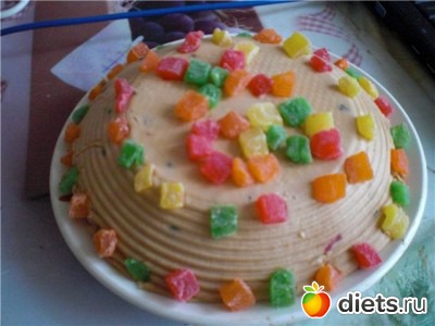 Под форму поставить тарелочку, чтобы стекала сыворотка. Освободить от формы, украсить цукатами.